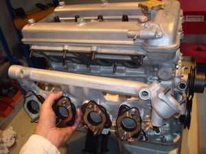 La pipe d'admission est équipée de brides de carburateurs neuves.